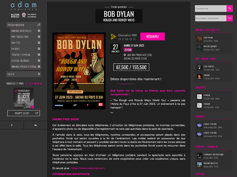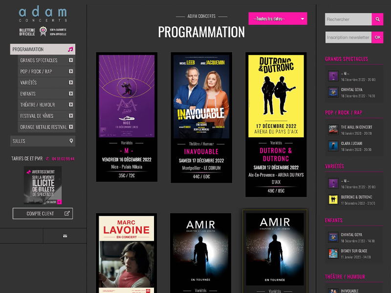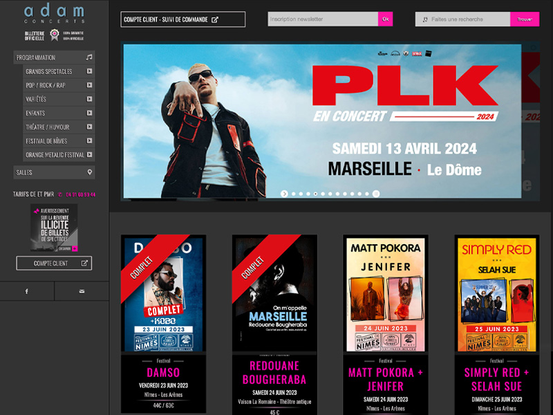 Dans le cadre de son activité, Adam Concerts a choisi La Fab depuis 2012 pour la création de son site, qui référence les différents événements de la région; et sa communication relation presse et clients via ses newsletters ou les espaces réservés et sécurisés du site.